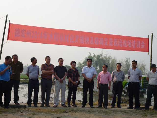 4月29日,全州2014年机械化育插秧现场会于盈江县举行。州农业局局长宋雨发,州农业局相关领导及相关部门负责人、各县市农业局负责人及农业科技人员,盈江县各相关乡镇农业负责人参加了会议。
