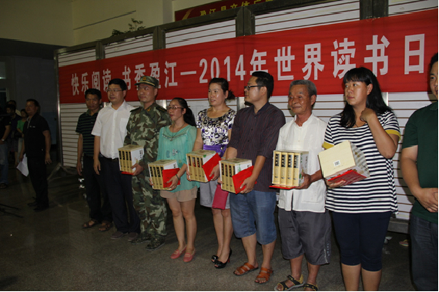 表彰优秀,树立典型。为在全社会树立读书典范,盈江县文体广电旅游局评选了十佳读者,县委副书记、德宏州青年读书会会长李君川为十佳读者发放了奖品。