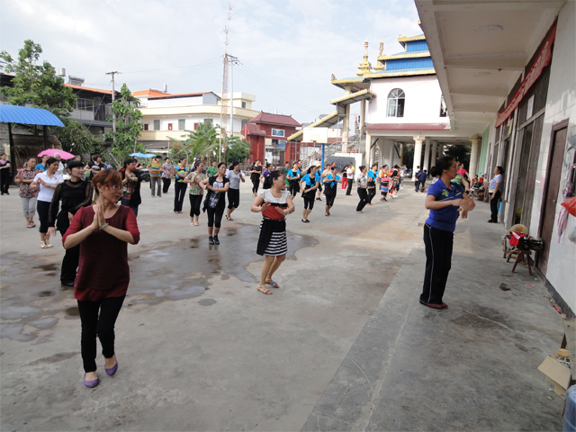 为推广盈江县老体协自编的傣族《吉祥如意》、傈僳族《傈僳欢歌》民族健身操,促进老年人体操健身活动的广泛开展,近日,县政府、县关工委利用两天的时间,在小辛寨培训基地举办了2014年全县老协、老体协文体骨干培训班。来自县直老年体协15个文艺组、各乡镇农场老协、老体协的文艺体育骨干共86名学员参加了培训。县老体协文艺组思爱章等7位老师对两套民族健身操进行培训。