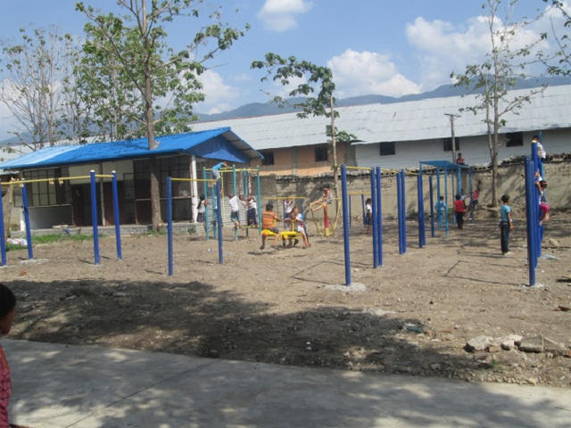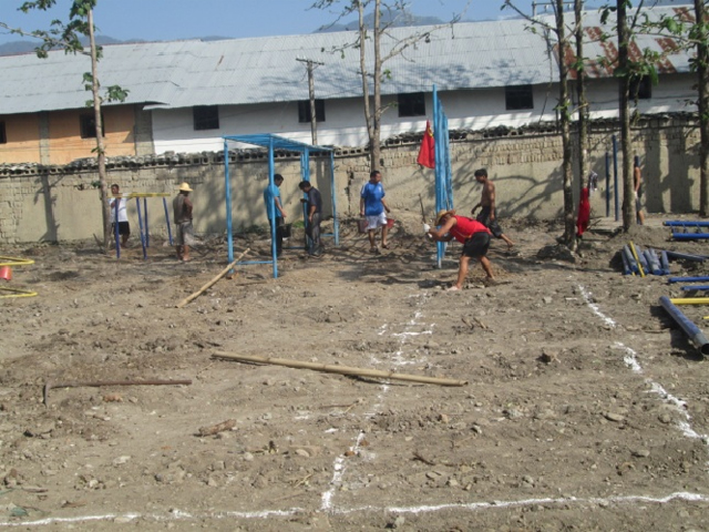 当日,中心小学党小组21位男党员,本着勤俭节约、增强凝聚力、提升战斗力的坚决态度和建设美丽校园的无限信心,以饱满的干劲和激情,积极投身于活动,用简陋的工具深挖基槽、拌匀沙灰、灌饱沙浆、安装器材。活动中,人人虽挥汗如雨,却精神抖擞,脸挂笑容。半天过后,一块平坦、舒适,满载爱心的体育场地展现在眼前,场地上有单杠、双杠、翘翘板、天梯等健身器材。