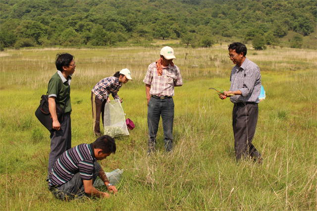 专家组一行,在县畜牧局相关工作人员的陪同下,先后到苏典乡黄草坝、水槽河、平原镇农场轮窑砖厂、勐弄乡、儒林公司肉牛基地和盈达富硒肉牛有限公司,实地查看草山草坡,指导开展牧草种植、农作物秸秆加工等适用技术,调查了解热带和亚热带野生牧草种质资源,并对本地特有牧草进行采样。专家组通过实地调查,深入了解,对盈江草原生态监测和牧草体系建设工作给予了充分肯定。并希望加大宣传力度,创新工作举措,积极引导广大农户,扩大覆盖面,扎实有效推进盈江县草地畜牧业发展。