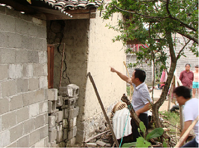 2014年5月24日4时49分,云南省德宏傣族景颇族自治州盈江县(北纬25.0度,东经97.8度)发生5.6级地震,震源深度12千米。地震发生后,为了解清楚挂钩点户允、朵木村民小组受灾情况,早上9时30分至下午1时40分,盈江县道路运输管理局局长思应章及张顺云、李家猛到挂钩点挨家挨户对房屋受损、人员伤亡情况进行了排查与了解。
