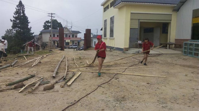 在“5·24”地震灾情发生后,团县委应急救援志愿队安排一只分队于中午1点半从平原出发去卡场灾区,并于3点20到达五排小学,据了解五排小学有183名学生,各级包括学前班,小学阶段各个年级有一个班,共有七个班,住校生105人,教师12名,其中包括志愿者3名。2009年盖的教学楼已严重受损,2012年建设的学生宿舍楼、食堂未受损,教师平时借宿在五排村公所,现急需解决七隔上课的教室。志愿者们马上积极动手配合学校为学校搭建上课的教室。