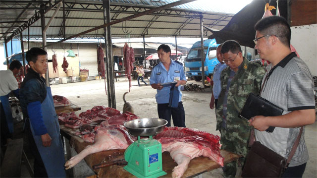 一是严把生猪入场关,认真查证验物,《动物检疫合格证明》合格有效、证物相符、临床检查健康,方可入场,并回收《动物检疫合格证明》;二是严把宰前和宰后同步检疫关,屠宰前2小时内,严格按照《生猪产地检疫规程》中“临床检查”方法实施检查。宰后对同一头猪的头、蹄、内脏、胴体等统一编号进行检疫;三是严把无害化处理关,对检疫不合格的动物及动物产品,严格按照无害化处理规定执行;四是严把活畜禽交易和鲜肉市场监管关,先后检查活畜禽交易和鲜肉市场6个次,出动执法人员34人次。
