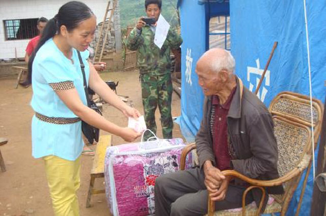 28日上午,县残联一行到苏典乡受灾较严重的苏典村和勐嘎村进行慰问。每到一户残疾人家中,克摆恍副理事长都亲自把慰问品及慰问金送到残疾人手中,并嘱咐他们期间一定要注意安全。在只有两位残疾老人相依为命的曹大文家,克摆恍副理事长亲切的询问他们的生产生活状况,了解他们存在的困难,并及时与乡残联的理事长对接,希望在往后的工作中尽力去帮助他们。此次县残联走访慰问为残疾人送去了15床棉被、15桶豆油,慰问金共计3000元。同时州残联领导高度重视灾区残疾人的受灾情况,为残疾人送去了3000元的慰问金。
