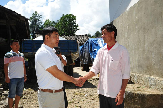 离开卡场镇后,孔亮一行又驱车赶往苏典乡勐嘎村,看望慰问盈江地税局退休干部杨启东。中午一点半,孔亮一行到达勐嘎镇,在杨启东家里,孔亮,详细了解了老同志生活上存在的问题和困难,并及时送上了慰问金,叮嘱盈江县地税局负责人一定要受关心他的生活,同时鼓励他坚定信心,克服眼前困难,积极开展减灾自救。退休干部杨启东在接过孔局长手中的慰问金时激动不已,深深感谢地税局的领导和同志们长期以来对自己的照顾,表示将化今日感动为明日建设家园的动力,克服地震灾害影响,早日恢复正常生活秩序。