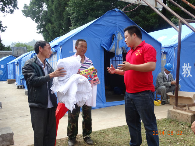 盈江县“5·24”、“5·30”地震发生后,共青团盈江县委立即在全县启动抗震救灾应急志愿服务工作,在卡场、勐弄、苏典三个重灾区和县城及时组建应急志愿者服务队。面对相关抗震救灾物资紧缺的困难,团县委积极向上级团委申请,并广泛动员社会各界力量。