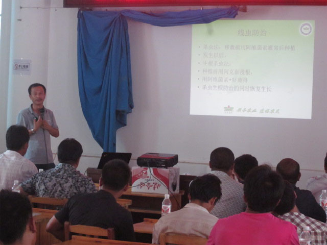 本次培训委托江门香蕉协会进行培训,主要讲解了香蕉病虫害防治,香蕉生长各个时期的管理,以及香蕉热区种植的各类注意事项,普及了各类香蕉种植的农药、化肥及管理手段的相关知识。培训方也很重视这次培训,为此抽调了本单位的高级农艺师对农户进行各类知识的讲授,并携带了大量的农具农资参会,对蕉农进行手把手的培训。