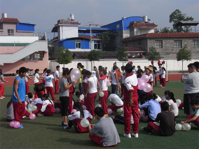 车杰校长在活动之前做了动员讲话,预祝所有考生考出好成绩,希望同学们在考场上要具备“三心”,即信心、细心、耐心,鼓励同学们要坚定信心,抖擞精神,迎战高考。在充满活力的音乐中,同学们随着指导教师的示范,开始了“正话反说”、“为你捶捶肩”等活动,现场气氛马上就活跃起来。在特六班宁鹏、李喜登两位同学的领唱下,《相信自己》的歌声里洋溢出坚定的自信心。高三老师为同学们献上华尔兹,优雅的舞姿赢得阵阵掌声。接着是分组游戏及“七月火把节”、“兔子舞”等师生同乐的节目,同学们都放松了心情,达到了愉悦身心的目的。他们饱含热泪高声唱起《朋友》、《祝福》,最后在《怒放的生命》饱含激励、斗志的歌声中,结束了本次释压活动。