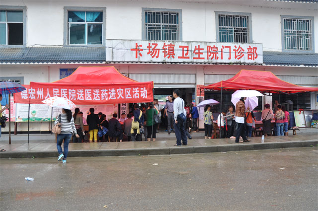 6月7日一大早,由德宏州人民医院内、外、妇、儿等10多个专业科室的18位专家组成的大型巡回医疗组,到卡场镇街子为灾区群众开展义诊服务,受到各族群众欢迎。