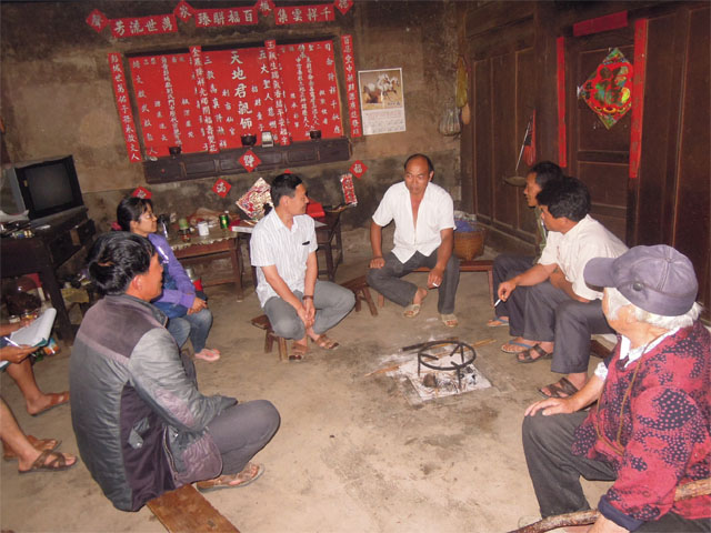 银河村灾情调查和宣传组由芒章乡政府吴庆寿党委副书记,廖文富部长带队,村两委和发改局驻村工作队陪同,到银河村各村寨,进村入户调查灾情并宣传防震安全知识。每进入一户村民家,吴庆寿副书记都耐心的向村民介绍盈江县“5·24”地震的受灾情况,并宣传防震减灾知识。地震时应该就近躲避,震后迅速撤离到安全的地方,避震应选择室内结实、能掩护身体的物体下,易形成三角空间的地方。发改局张蓉副书记也提醒村民,平时要合理的放置家具、物品,防止掉下来伤人,门口道路应清理,保持畅通。