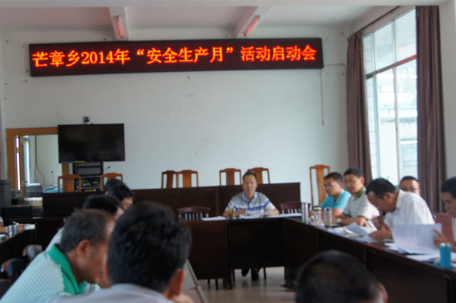 为进一步加强芒章乡安全生产工作,按照盈江县安全生产委员会办公室《关于开展2014年“安全生产月”活动的通知》盈安委办〔2014〕5号文件精神,结合实际,6月9日,召开芒章乡2014年“安全生产月”活动启动会,安排部署近期安全生产工作和安全生产月活动的相关事宜。党政领导班子、乡直各站所、村三委及部分企业代表共40余人参加会议。