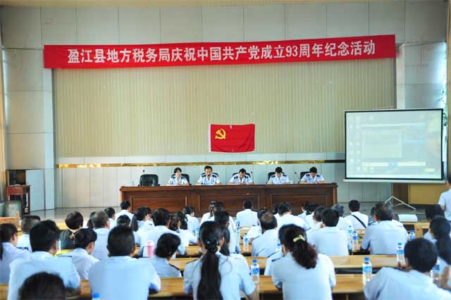 为庆祝中国共产党成立93周年,扎实推进党的群众路线教育实践活动,进一步激励广大党员奋发进取、建功立业,盈江县地税局于“七一”前夕举行了庆祝建党93周年主题纪念日活动。全局68名党员及部分退休老党员代表参加了纪念活动。