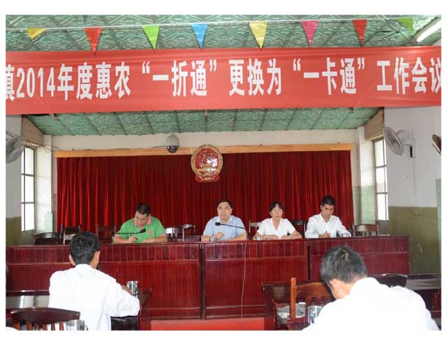 盈江县人民政府为深入贯彻党中央、国务院“服务三农”的指导思想,顺应“强农、惠农、富农”的国家战略和落实《云南省“三农”金融改革创新试点和服务便利化工作推进会》会议精神,真正使现代金融普之城乡、惠之于民。于6月13携盈江农信社历时一个月时间在全县15个乡镇和一个国营农场召开了“惠农存折更换为惠农金碧一卡通”工作启动会。为确保“折换卡”工作有序推进,实现工作无死角、任务不空转,县政府办牵头出台《盈江县惠农一折通更换为金碧惠农一卡通工作方案》,方案明确了目标任务、时间节点和责任,形成各负其责、上下联动、稳步实施的推广工作格局。