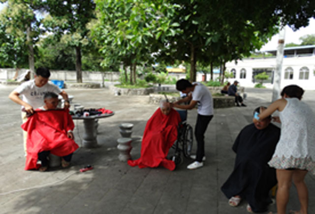 团县委书记罗祥兆和机动三中队杨勇指导员带领志愿者和年轻军官深入福利院。他们为孤寡老人们送去了生活用品、水果等节日礼物,帮老人们整理房间,并陪同老人聊天,倾听几位抗美援越老兵亲临战场的故事,回忆他们的峥嵘岁月,使全体志愿者和官兵们深受教育。此外,“齐齐发艺”的理发师们也免费地为福利院的老人们修剪头发,整理仪表等,展现社会对弱势群体的人文关怀。