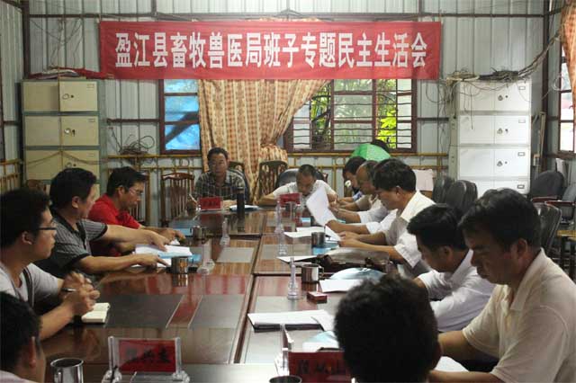 8月11日上午,盈江县畜牧兽医局召开领导班子专题民主生活会,按照“照镜子、正衣冠、洗洗澡、治治病”的总要求,以为民务实清廉为主题,聚焦“四风”突出问题,以整风精神开展批评与自我批评。县农业局党委书记彭武全、县农林水纪工委副书记王德忠到会作指导,县畜牧兽医局班子成员参会;该局属科级党员干部、各支部书记、畜牧兽医专家组代表、专业站负责人及农业局活动办公室同志列席