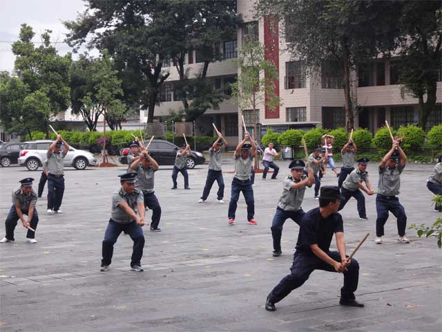 在培训中,保安们接受了学校安全管理制度规范、保安职业道德和业务理论、值岗值勤日常规范、安保“技防”和“物防”技术应用、突发事件紧急处置和防卫技能、值勤中具体问题的处理方法等理论知识和业务技能培训。县保安公司教官就校园周边值勤规范和交通安全指挥手势,学校消防安全基本技能,队列训练和擒拿格斗技术等保安基本技能进行培训。