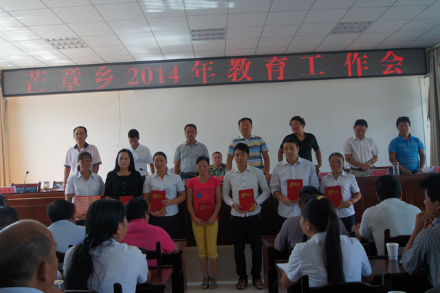 9月15日下午,芒章乡召开2014年教育教学工作会议,旨在深入贯彻落实省、州、县教育工作会议精神,营造尊师重教的浓厚氛围,明确全乡教育改革和发展方向,推进全乡教育事业快速发展,谱写芒章教育跨越发展新篇章。芒章乡党政领导班子成员,县教育局副局长左金明同志,中小学负责人,各村“三委”负责人,各自然村、村民小组组长,各类受表彰人员共110余人参加会议。