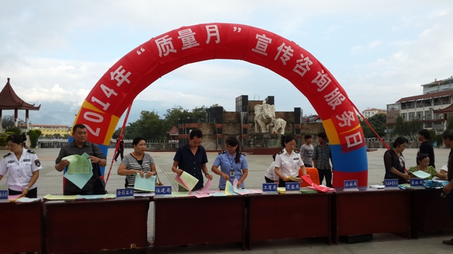 为进一步规范盈江县卷烟市场经营秩序,加大对涉烟违法犯罪活动的打击力度,维护国家利益和消费者的切身利益,盈江县烟草专卖局积极响应政府的组织, 于2014年9月12日上午参加了在盈江县盈湖广场开展的推动“三个转变”建设质量强县为主题的质量月宣传活动。