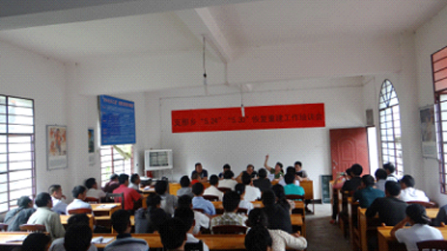 会议最后,专业技术人员王晓春、向旭光同志就民房恢复重建的图纸选择、材料选择、施工队选择等重建流程和房屋质量的技术性问题向参会人员进行了详细的讲解。