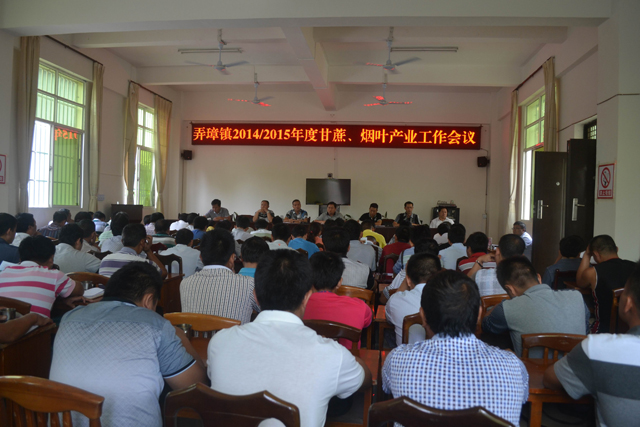 9月24日下午,弄璋镇召开2014/2015年度蔗糖、烟叶产业发展工作会议,全镇干部职工、村“三委”班子、驻村工作队员及弄璋糖厂、烟站等相关部门150余人参加了会议。
