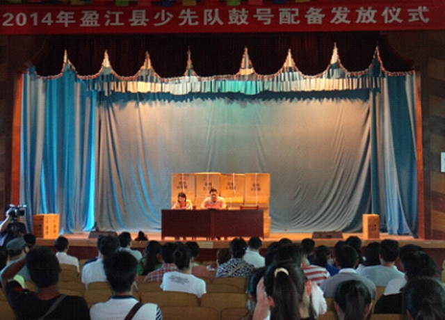 9月26日下午,在盈江县委小礼堂举行了2014年盈江县少先队鼓号配备发放仪式。团县委书记罗祥兆,盈江县72所完全小学的校长和大队辅导员参加了发放仪式。