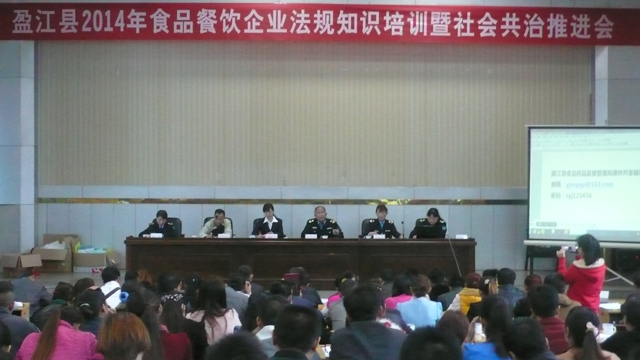 为进一步加强餐饮服务环节食品安全监督管理,有效落实企业食品安全责任,切实增强餐饮服务企业负责人和从业人员的守法经营意识,2014年10月28—29日,由盈江县食品药品监督管理局食品组织,对全县学校(含托幼机构)、各类餐饮业582户673名餐饮经营单位负责人开展了餐饮服务环节食品安全知识培训。