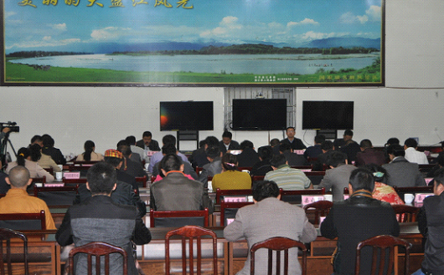 会上,董腊苗通报了2014全县民族团结工作开展情况,向参会人员介绍了一年以来在民族团结工作方面取得的成效、存在的困难和挑战。县委组织部、县委统战部、县委政法委、县公安局、县教育局、拉邦镇、民族学会代表(县傣学会)等部门围绕“民族团结”这一主题分别进行交流发言。