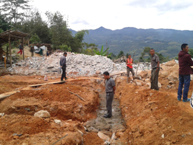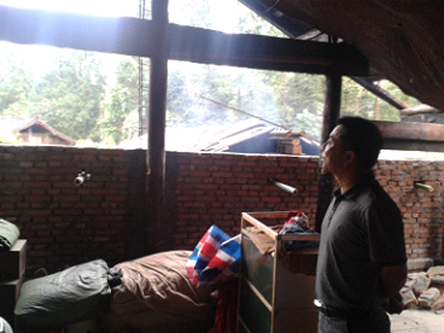 10月27日,盈江县人民防空办公室主任杨庆忠到卡场镇五排村五排小组查看“5.24”“5.30”地震民房恢复重建工作开展情况。