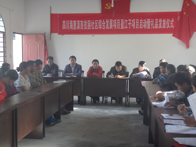 2014年11月14日上午,四川海惠滇西贫困社区综合发展项目盈江子项目启动暨礼品发放仪式在旧城镇喊撒村委会举行。会议由县畜牧兽医局杨龙章同志主持,海惠小母牛项目滇西片区官方负责人、县畜牧兽医局领导、旧城镇政府分管畜牧业和挂村领导、旧城镇海惠项目受助的2个互助组共70余人参会。