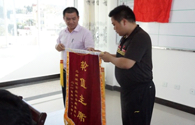 团县委书记罗祥兆向与会的各团组织表示热烈欢迎并介绍了区域共建工作的重要意义,允燕社区许申进主任宣读了轮值主席安排决定,并由罗祥兆书记向十一月份轮值主席授以锦旗。