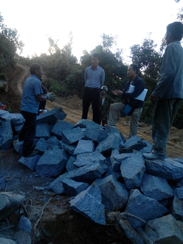 为加快地震灾后民房恢复重建挂钩点各项工作,确保恢复重建工程质量和施工安全,2014年11月14日,县政务服务管理局组织监理、村两委负责人到恢复重建挂钩点卡场镇草坝村吾呀、盆都两个村民小组就恢复重建推进情况进行督促检查。每到一处检查组都认真细致的查看了地基平整、基巢开挖、材料准备和来源渠道,并认真听取了群众在施工过程存在的困难和急需解决的问题。