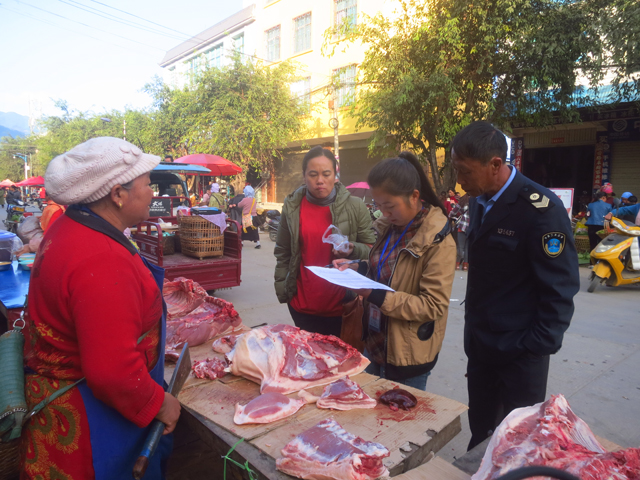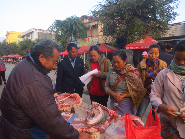 为进一步规范盏西镇市场生肉铺检疫秩序,强化食品安全主体责任和诚信意识,提振广大群众的消费信心,确保人民群众吃上“放心肉”,保障盏西镇社会和谐稳定。我11月28日上午,盏西镇联合工商所、卫生院对街上31摊(21家)肉铺进行检查。通过检查,发现有16家未进行检疫就上市,有7家都到兽医站进行检疫过,其中有2家看见执法人员才急忙跑到兽医站进行检疫。检查中,一部分肉铺老板态度极不友好,还用没时间去检疫、人找不到等借口来搪塞。部分买肉群众仍然没意识看检疫证来购买放心肉。对未检疫的16家肉铺老板检查组进行了口头教育,让肉铺老板一定要本着良心在上市前对生肉进行检疫,卖放心肉,吃放心肉。