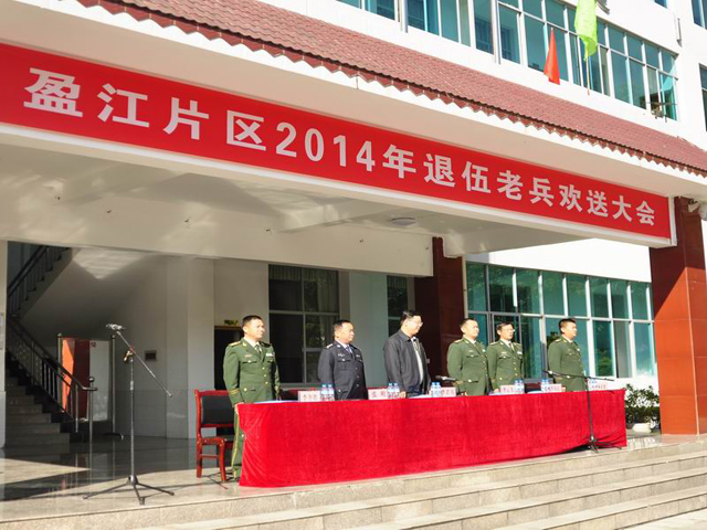 11月26日下午,盈江片区部队隆重举行2014年度退伍老兵欢送大会。盈江县委副书记李君川,县政府副县长、公安局局长张明,德宏边防支队党委常委、副政治委员李云飞,驻盈江片区部队官兵、平原一小师生、驻地群众500余人为退伍老兵送行。