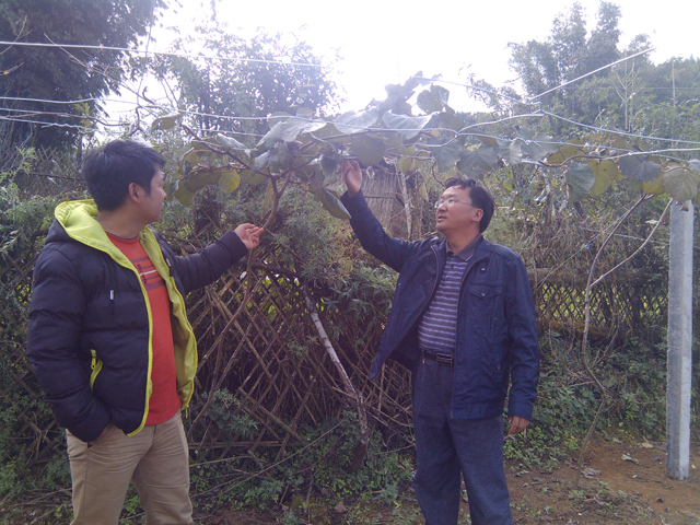 2014年12月4日,驻村工作队长、副镇长等一行5人到特色产业发展基地(庄园经济雏形)进行调研。