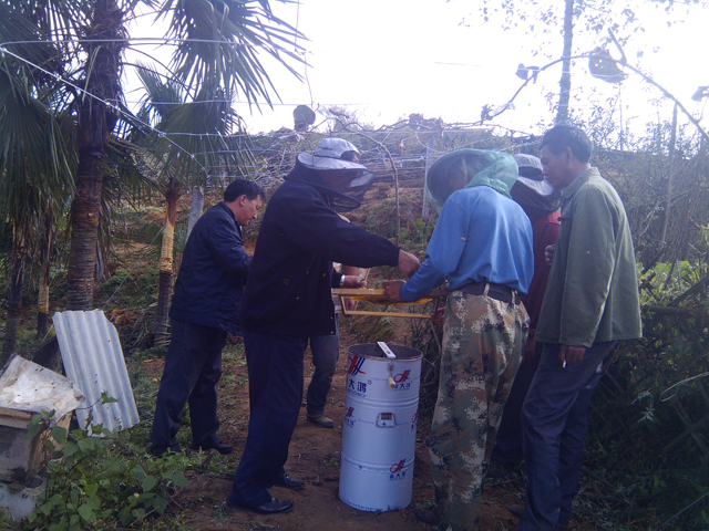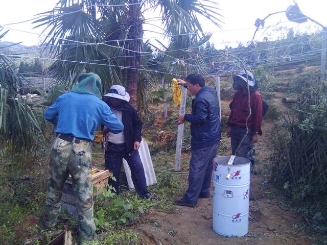 在基地,各领导对猕猴桃的冬春管理进行仔细的询问,并提出相关建议、意见,认真查看了木桩架子改造为水泥桩、铁丝网的工作进展,倾听种植户遇到的困难、问题。工作队长把一个摇蜜机作为奖品奖励给活框蜜蜂养殖户,并当场进行蜂蜜采割示范指导,并现场进行测产。通过测产,发现蜂蜜质量好、产量高、味道甘甜,可以肯定的说,工作队驻村以来一直推广的活框养殖示范项目,在阶段内获得圆满成功,活框养殖在昔马有广阔的发展前景。