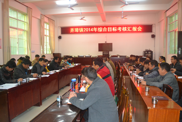 12月23日上午,县考核组对弄璋镇政府信息公开、教育、消防等13项目标责任书进行集中考核,弄璋镇党政领导、站所负责人及各块工作专干、退休老干部共40人参加了考核会议。