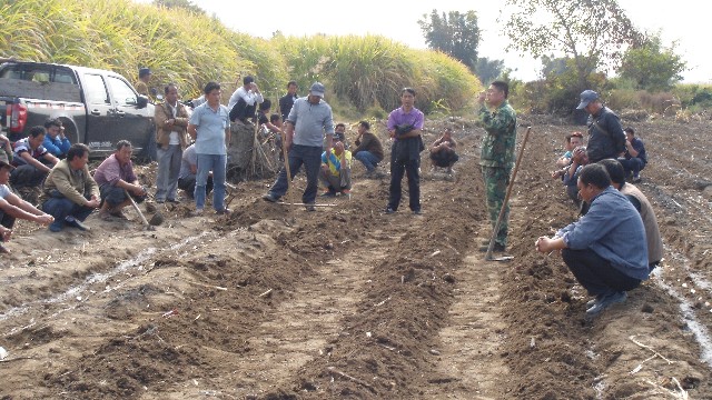 2014年12月30日,盈江县区域推广站在弄璋镇飞勐村弄兴村民小组召开宿根甘蔗间套种马铃薯技术培训会。会上,技术人员对宿根甘蔗间套种马铃薯所具有的省工省时、一工多劳、提高土地利用率、改善土壤肥力、改善蔗田环境的优势和甘蔗间套种作物应主次分明、高低搭配、熟期早晚搭配、共生互促的原则进行了讲解,并现场操作详细讲解了宿根甘蔗间套种马铃薯的技术步骤。