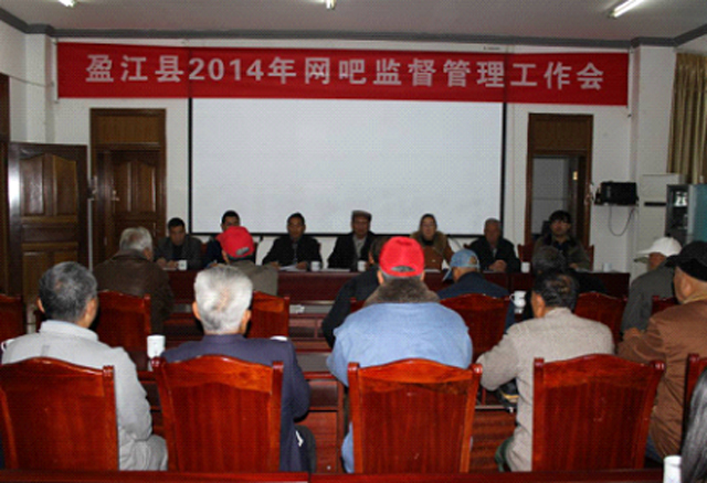 为进一步规范网吧经营秩序,有效杜绝网吧接纳未成年人及超时经营等违规行为,29日上午9时,盈江县2014年网吧监督管理工作会议在文体广电旅游局会议室召开,县关工委、县文体广电旅游局、县公安局、县工商局的领导及“五老”监督员共 28人参加了会议。会议由县关工委主任尹必久主持。
