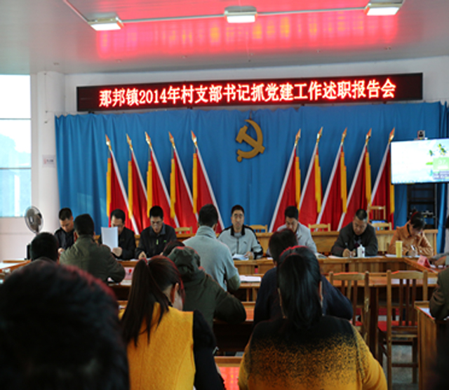 2015年1月6日,那邦镇召开2014年村支书书记抓党建工作述职报告会,暨那邦镇2015年基层党建工作会。全镇领导班子,村党支书、主任,党员干部50余人参加了会议。