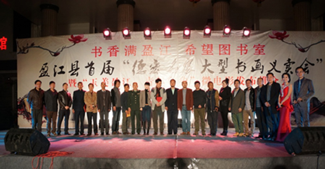 2015年1月7日晚,由共青团盈江县委主办,县文化体育广电旅游局、盈江新青年文化艺术协会协办的“书香满盈江.希望图书室”盈江首届德宏名家大型书画义卖晚会,在县文化广场隆重举行。团州委副书记侯华,县委常委、县人民武装部政委何光禄,副县长康建辉、朱茂然,县委宣传部副部长排东胜等领导出席了晚会,德宏著名书画家孙太仁、李光华、李正保等多位老师以及爱心企业家、社会爱心人士参加了晚会。