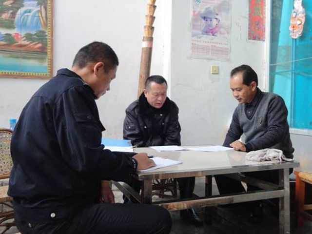 按照州公安局开展的“进民居、访民勤、知民意、暖民心、保民安”走访活动方案要求,2015年1月9日,县公安局党委委员、纪委书记时国彦带领纪委督察民警深入弄璋乡、新城乡走访联系困难群众、受违法犯罪侵害群众及人大代表、政协委员共20人,期间发放“进民居、访民勤、知民意、暖民心、保民安”群众测评表20份,认真听取并记录群众反映的社会治安方面存在的问题及意见建议。
