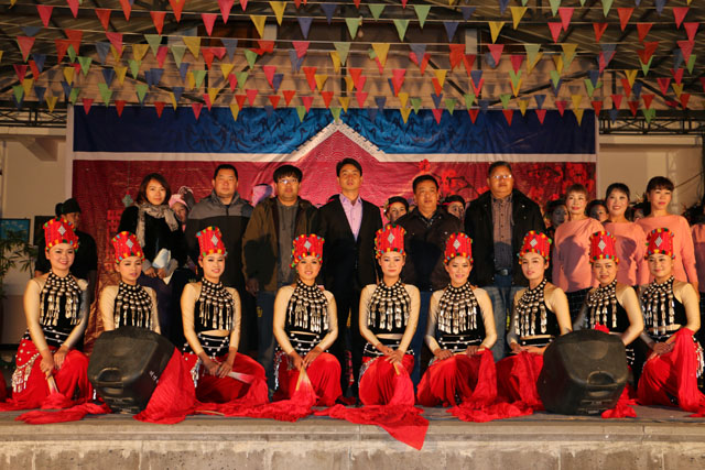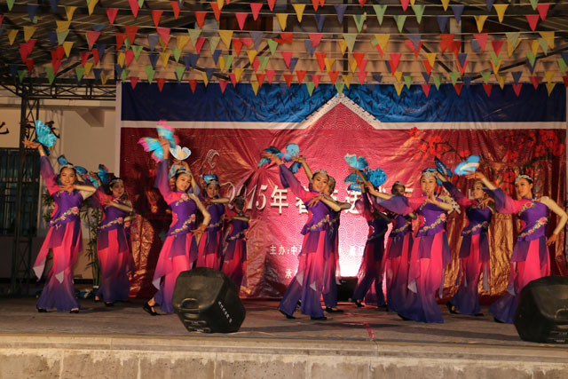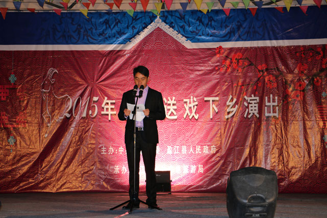 在盏西镇文化广场上,掌上、欢呼声此起彼伏。演出开始前,盏西镇副书记郗承磊致欢迎词,向全体演职人员表示了感谢,并向观看演出的群众送上了新春的祝福。伴随着轻快的节奏,开场舞《田野的春天》拉开了整场演出的序幕。有展现民族特色的傣族舞蹈《孔雀呓语》、景颇舞蹈《太阳照亮景颇山》,宣讲十八届四中全会精神的音乐快板《富民佳音传边寨》,也有盏西镇当地村民自发编排的歌舞串烧。长达90多分钟精彩的节目,给盏西镇的父老乡亲带来了欢乐、也送来了党最深情的问候。掌声、欢呼声在广场上一浪高过一浪,聚集观看的群众多达800余人。