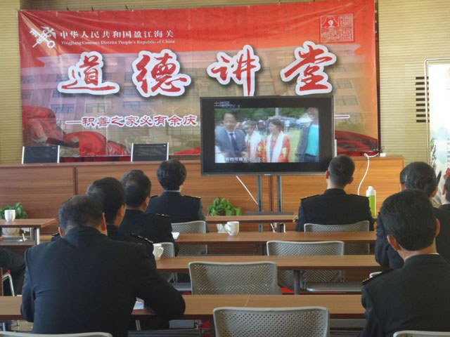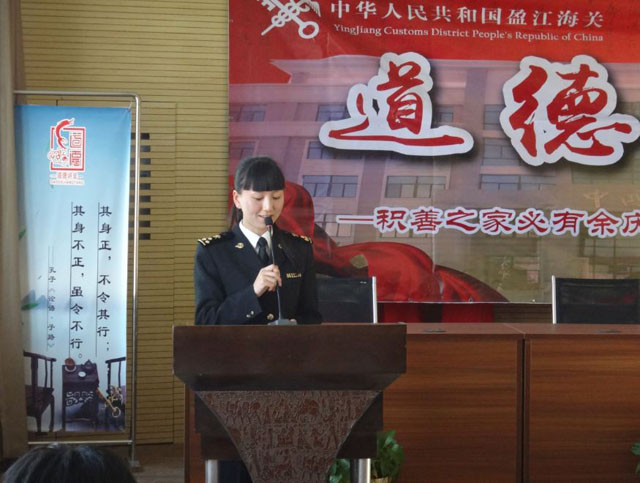 2015年1月29日下午,盈江海关组织全体关警员开展2015年第一期“道德讲堂”活动。本期道德讲堂以“爱岗敬业”为主题,讲述平凡人在平凡岗位上的先进事迹。通过“做反省”、“唱歌曲”、“学模范”、“诵经典”、“谈感悟”五个环节,唤起了“爱岗敬业”在关警员心中的共鸣,很多同志争先发言。“道德讲堂”在提升盈江海关干部职工思想道德水平方面发挥了积极作用。