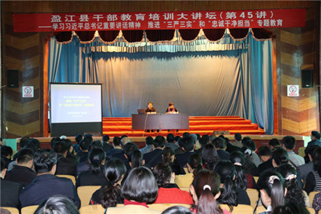 2月3日下午,盈江县干部教育培训大讲坛第1讲《学习习近平总书记重要讲话精神推进“三严三实”和“忠诚干净担当”》专题讲座在县委小礼堂举行。中共云南省委党校党建教研部副教授、党史党建研究所副所长鲁彩荣做专题讲座。盈江县级领导干部、各乡镇、县直各单位副科以上实职领导干部和有关单位二级班子以上领导430余人听取了讲座。