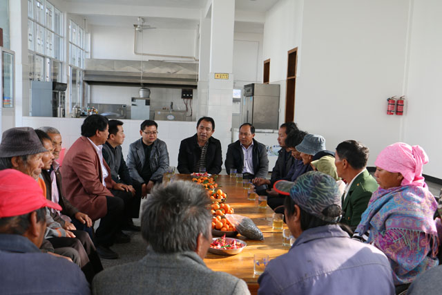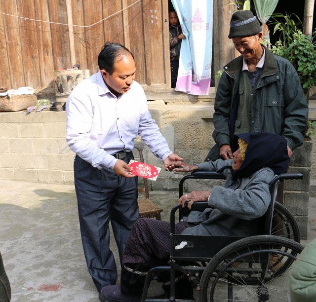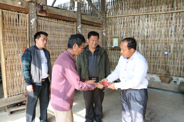 下午,慰问团一行在县人大常委会副主任排建华的率领下先后看望了基层老干部李永贤、残疾户孔晓长、军烈属杨小朗、农村老党员朗其忠和困难群众殷从宝。每到一处,排副主任都给他们送去慰问金和棉被、大米、食用油等物品,详细了解他们的家庭收入、生活状况和存在的实际困难。在松坡搬迁点,排副主任与搬迁户们亲切交谈,详细询问了施工进度,要求一定要确保房屋工程质量。盏西镇党委书记沙晓舟还为97户搬迁户送去了大米和食用油。