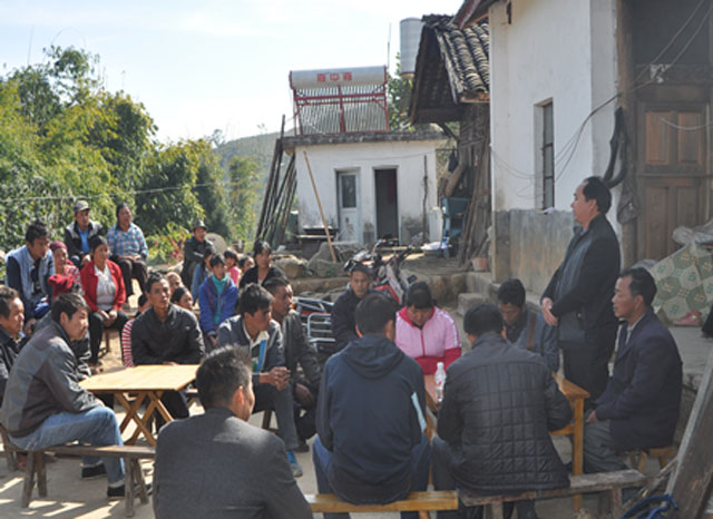 在卡牙村民小组召开的短会上,姜加刘传达了中央、省、州、县委县政府等各级部门对卡场灾区群众的关怀。并代表盈江县民宗局对卡牙村全体村民表示慰问,鼓励灾区群众发扬艰苦奋斗、自强不息的革命精神,加快恢复重建进度,早日建成新居。