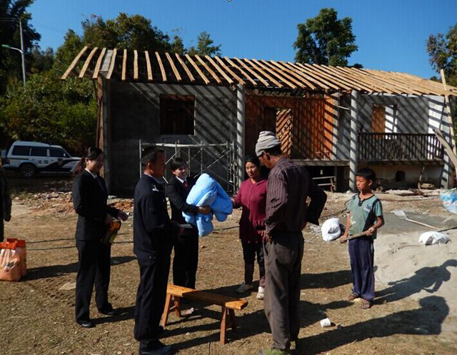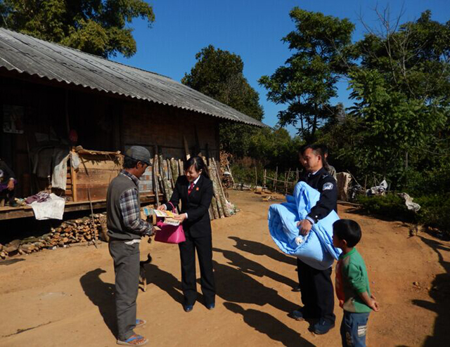 2月6日上午,盈江县人民法院新春慰问团整装待发,前往卡场镇草坝村。该院领导带领着妇委会成员、挂钩户联系干部等,为灾区的群众准备好了慰问金,大米、食用油、被褥和棉衣等日用品。到达后,在村干部的带领下,慰问团深入到每一个重灾户家中送物资体民意,在送去新春祝福的同时也用心体察灾区人民的生活情况,认真查看灾后房屋重建的进度。同时县法院妇委会也带来了计生宣传册、计生宣传日历本等发放给大家。