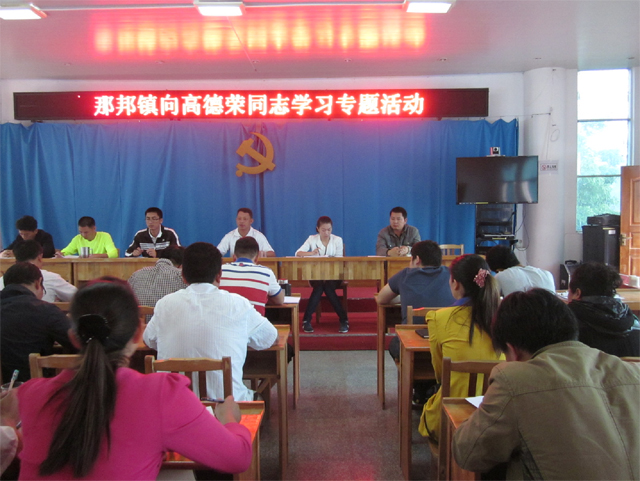 为了贯彻落实省委、州委、县委深入开展向高德荣同志学习的有关安排部署,充分发挥先进典型示范的作用,那邦镇2015年3月26日积极组织全镇党员干部向高德荣同志学习专题活动。