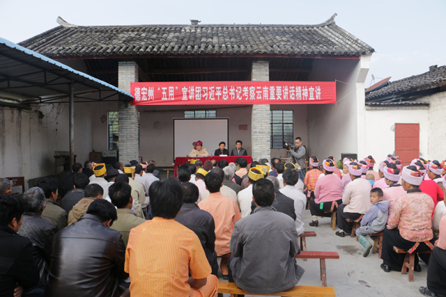 宣讲会上,思老师用亲切的民族语言向大家问好,深入浅出地讲解了习近平总书记赴云南考察时重要讲话的重要意义、思想内涵和精神实质。思老师指出要以习近平总书记重要讲话精神为指导,积极推动农村产业发展,建设美丽乡村、特色村寨。整个宣讲会持续了2个多小时,思老师宣讲内容丰富,语言生动风趣,知识面广,信息量大,既有理论的高度,又有思想的深度。村民纷纷表示通过听宣讲报告,让他们感受到了总书记的殷切关怀,让他们鼓足了干劲,要把村寨建设得越来越美。